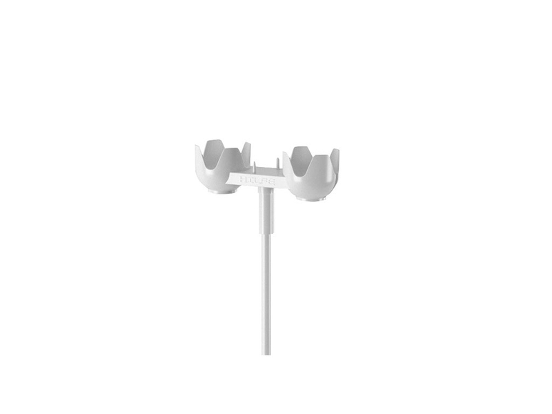 - Стойка выполнена из стальной трубы Ø16*1,5 мм, Ø25*1,5 мм и окрашена порошковой полиэфирной краской. Флаконодержатель выполнен из пластика белого цвета. Лучи основания выполнены из полиамида. Основание сборно-разборное